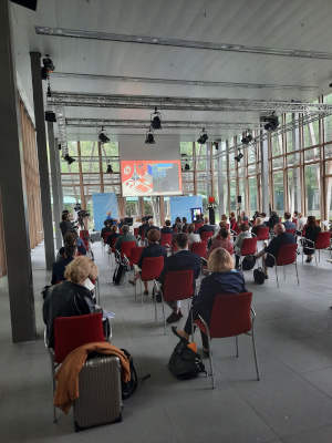 Diese beiden Bilder zeigen die Präsentation des Videos auf der Konferenz: