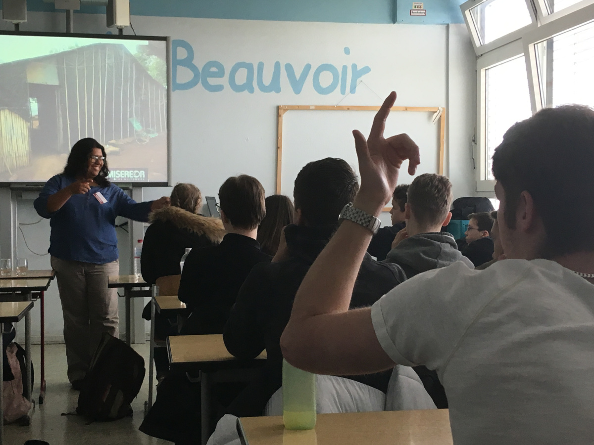 Im Rahmen der diesjährigen Misereor Fastenaktion hatten am 29.3. zwei Religionsgruppen der neunten Klassenstufe einen besonderen Gast zu Besuch, Frau Carmen García aus El Salvador samt Dolmetscher. Sie gab uns einen Einblick in ihr Land und ihrer Arbeit im Rahmen eines Hilfsprojekts.