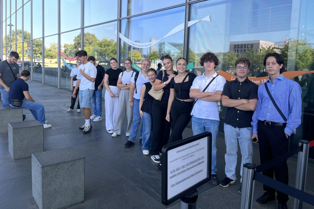 Auch der Besuch des Holocaust Denkmals und Informationszentrums hat uns zutiefst bewegt. Die dort gesammelten Eindrücke machten das Grauen des Zweiten Weltkriegs greifbar. Am nächsten Tag wurde es politisch. Wir hatten die Möglichkeit, das Bundeskanzleramt sowie den Rechtstag zu besichtigen und ein persönliches Gespräch mit einem wissenschaftlichen Mitarbeiter von Joe Weingarten zu führen. Der Politikwissenschaftler Mateo Schulze-Vorberg gab uns spannende Insider über den Verteidigungsausschuss und den Alltag als Abgeordneter.